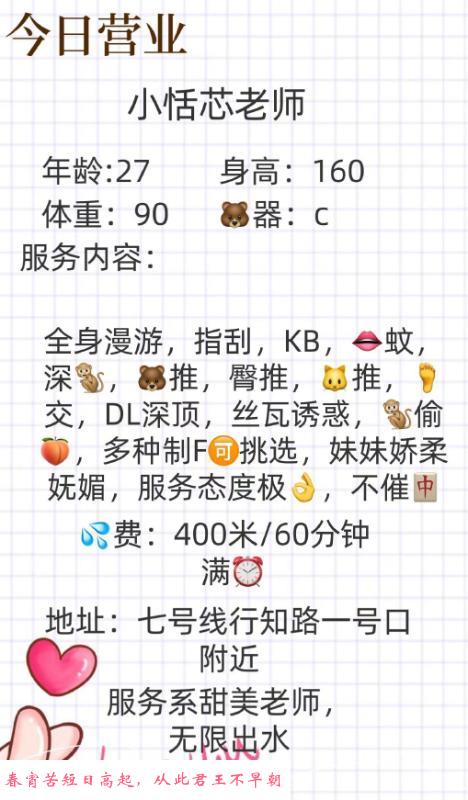 地址估计老狼一看就懂了,上海静安区KB圣地,至于这个妹纸也去过N次了,课表写的27实际估计30出头点