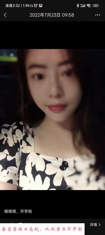 环境:自租公寓,整体环境良好,会要求你不敲门直接联系好她给你开门。硬件:身高一米六出头,颜值不算上乘