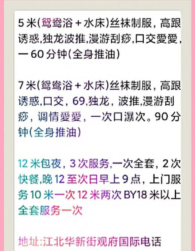 推荐水床服务,肉肉的大姐姐趴在你的身上,滋味不好形容,只有自己体会一次才知道