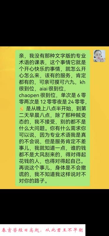 人照差距有点大,美颜有点过了,目测35+了,身材属于面条型,奶子有点瘪,聊天说,她说他是兼职口技挺好