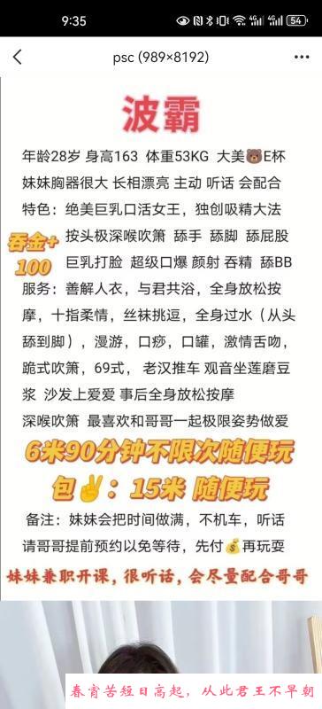 妹妹身材很高挑,1米7左右,很高大长腿,两条腿又长又直,可以提前说好穿制服丝袜,很勾引人,服务也很到
