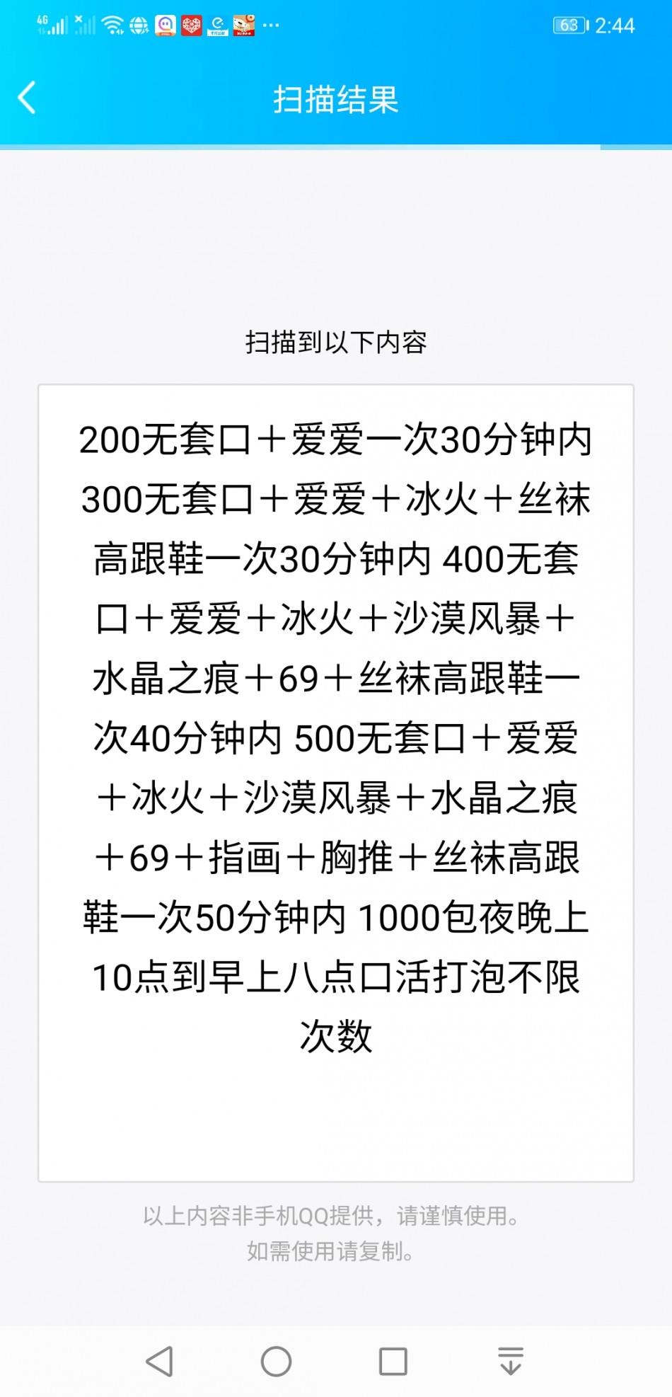 美女特别谨慎,先加微信然后qq联系,服务挺多的价位不一样,态度也挺好,具体过程就省略吧