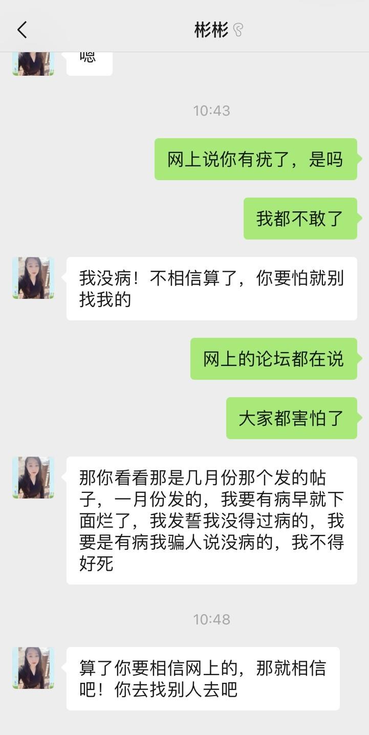 最近想找彬彬,但是看到论坛上都说他有疣毒,然后微信上问了她,她说自己没事。所以在此想问问各位,她现在