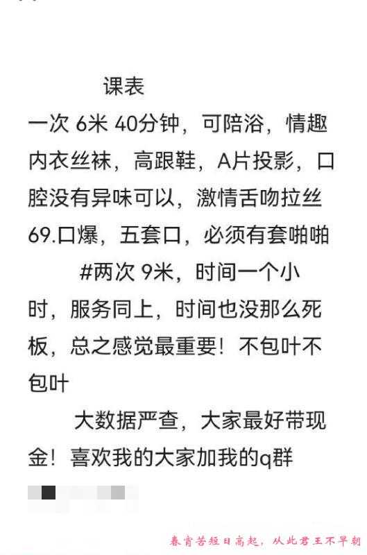 【特别注意】:凡是需要支付定金或路费的都是诈骗,再次提醒各位,一定不要先给钱!建议服务完后再给钱,或者谈好先给部分完事给剩下的。遇到还没服务就先给钱的,要千万小心被跑路和服务体验差,无数会员反馈谈好过夜却中途找借口跑路的情况!见面感觉不对劲就宁愿不玩,不然花了钱玩不开心得不偿失!